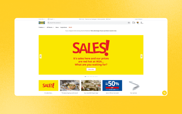Ikea is one of the most successful eCommerce websites in the world. It has a clean and easy-to-use interface, with a lot of white space that makes it easy to navigate.
