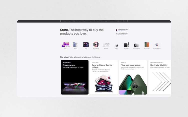 Apple is a brand that's known for its luxurious and simple designs. The Apple Store website is no different. It has a minimalistic design with clean lines and no clutter.