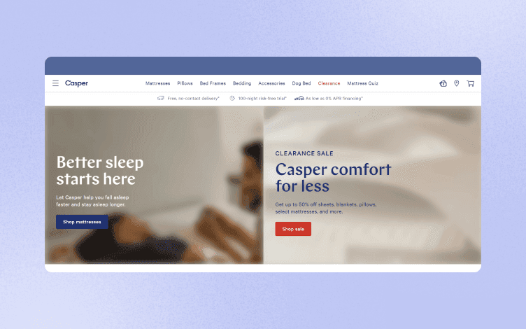 Casper uses a lot of imagery on its homepage, which helps break up the content and make it more visually appealing.
