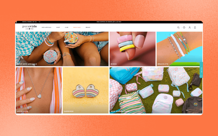 Pura Vida Bracelets is a good ecommerce website design for several reasons. First, it is a good example of how to make your customers feel like they are shopping in a store.