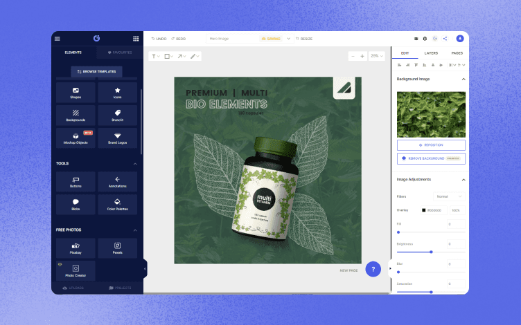 Glorify’s smart resize tool automates this process for you. Most of Glorify’s templates come in bundles. By downloading one template, you get its ready-to-use social media versions.