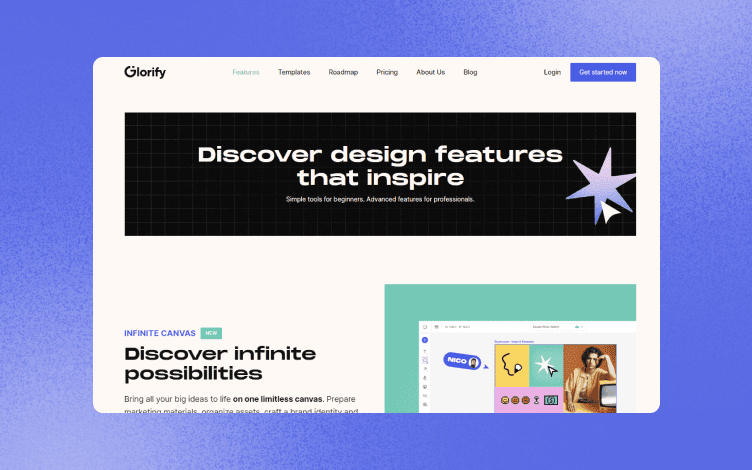 Glorify is like a perfect mix between Canva and Photoshop. It offers simple tools that are beginner-friendly and plenty of advanced tools for more experienced users.
