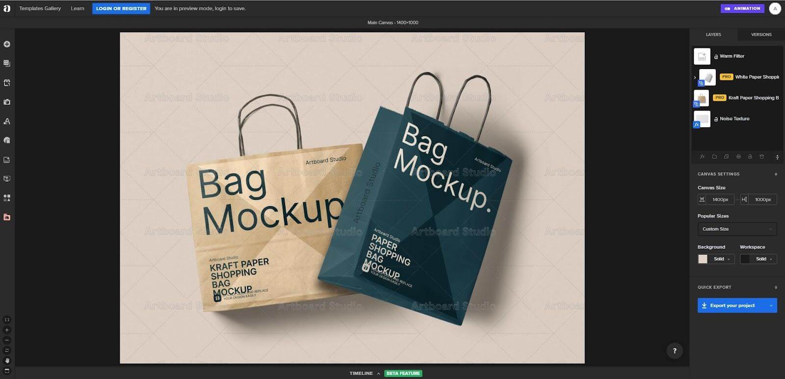 Artboard Studio is an online graphic design application mainly for designing product mockups.