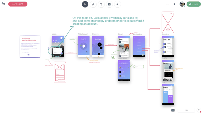 Invision Freehand is a collaborative design and prototyping tool, which has the features of freehand drafting mode and interactive mockups, collaboration, idea management, and user testing.