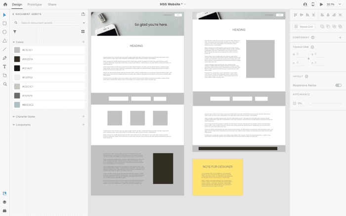Adobe XD has a light and advanced feel, yet it still provides users with many features and can be readily connected to Photoshop and Illustrator.