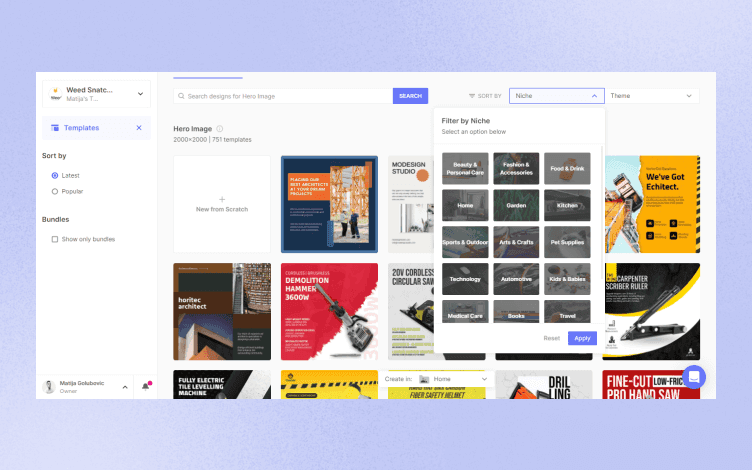 Therefore, you can easily create converting images using Glorify’s pre-sized templates covering everything from social media blog posts, product images and mockups, and ads to book covers.
