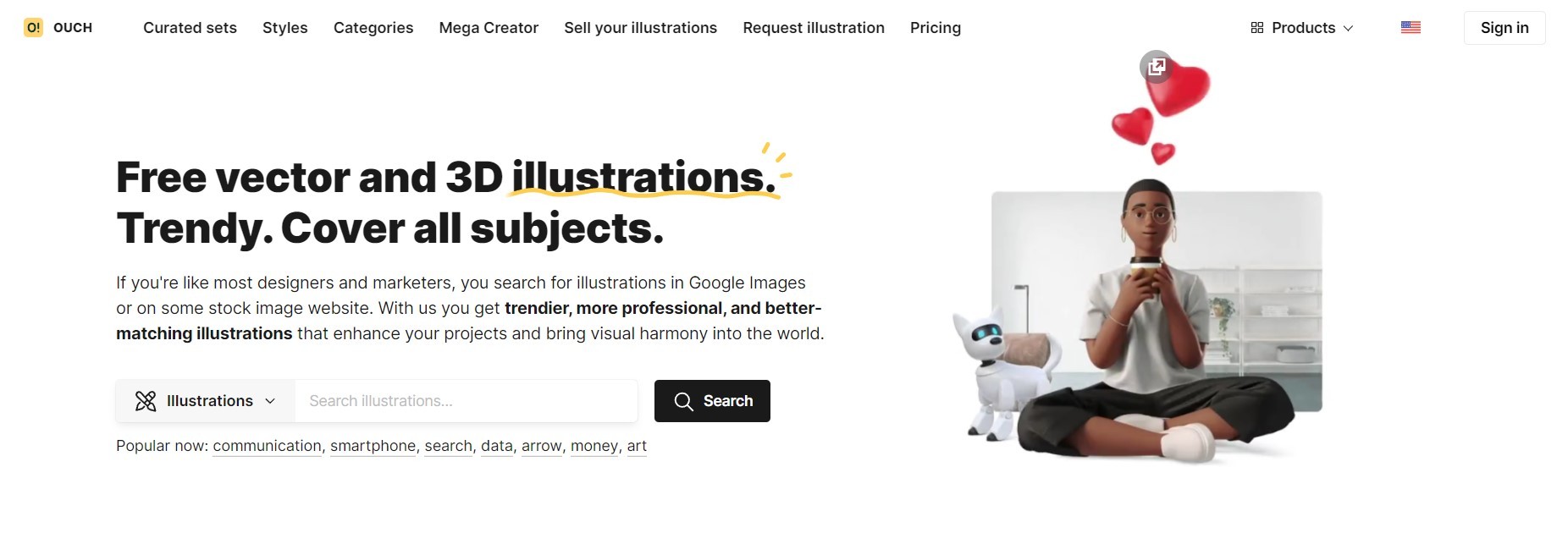 Ouch offers a one of the biggest collection of clipart. For example, there are more than 500 illustrations of plant clipart, more than 760 cliparts of cat and so forth. The interface is also incredibly easy to navigate and lets you sort clipart by category, style, and size, so you can find what you need quickly