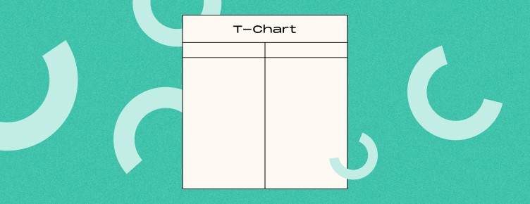 The T-Chart is a basic, very flexible organizational chart. Digitally, the T-Chart has a wide header at the top with the title and two columns filled with details on each subject. Graphically, it represents the letter T.