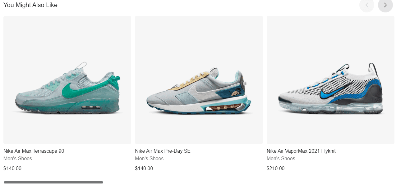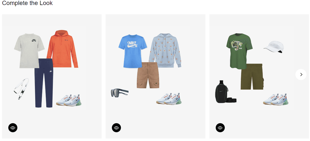 Nike took it even further by suggesting not only similar or related products but also the full sets(bundle offers) to complete your look.