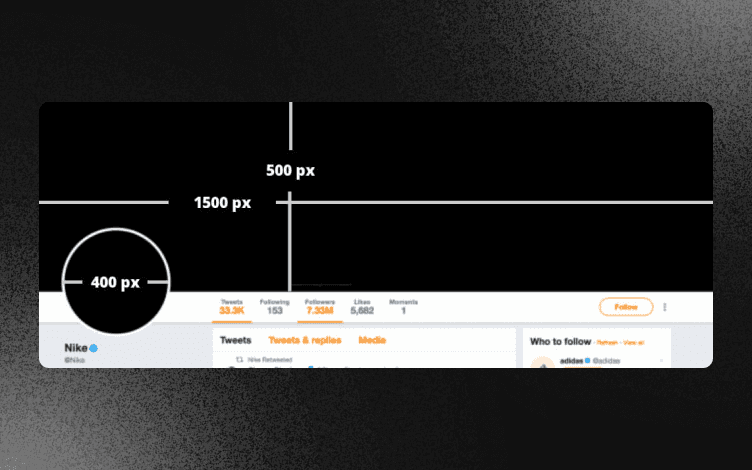 The best header size for Twitter is 1500x500 px and has an aspect ratio of 3:1. Images can be in JPG, PNG, or GIF (cannot be animated) format, and the size of your files should be a max of 2MB. But that's not where the story ends. This alone is not enough to guarantee you a great-looking background image.