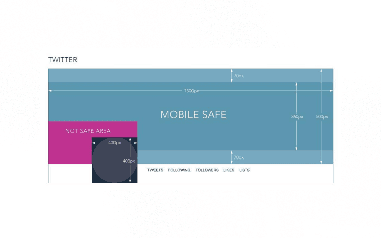 Considering your Twitter profile image size of 400x400 px, the "safe zone" for your Twitter header is only approximately 1500x360 px. In the picture below, you can see how your Twitter background image will look displayed on a desktop. Of course, as the screen size starts getting reduced, your profile image space gets reduced too.