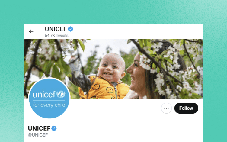Example of Unicefs’ Twitter header, conveying deep emotions to their audience. Many charities and non-profits choose this type of images because the nature of their business is helping and connecting. So, it’s in human nature to involve emotions in these situations.
