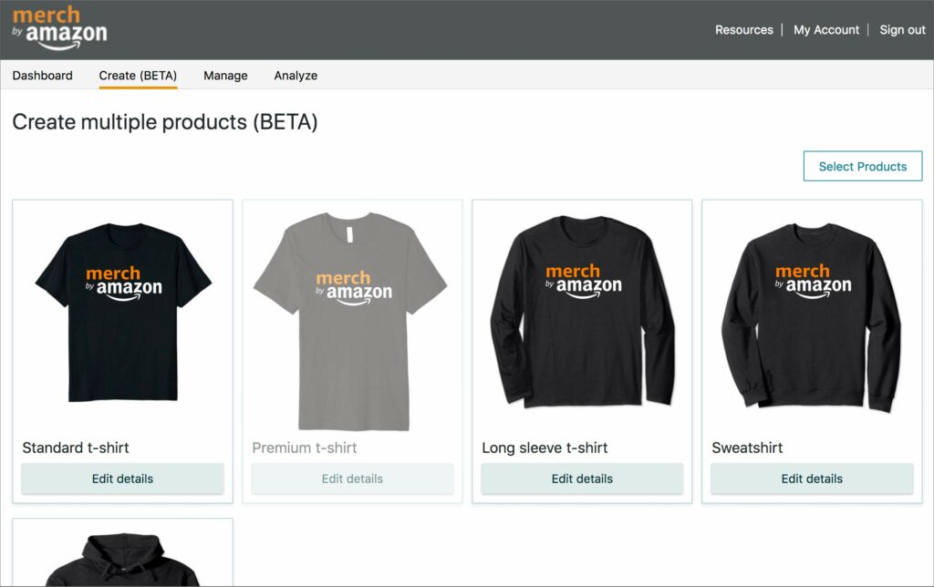 Merch by Amazon helps you to sell t-shirts, hoodies, and other designs, without any payment. The best part about merchandising with Amazon is that they take the responsibility for printing, shipping, packaging, and supporting the customer, all with your design.