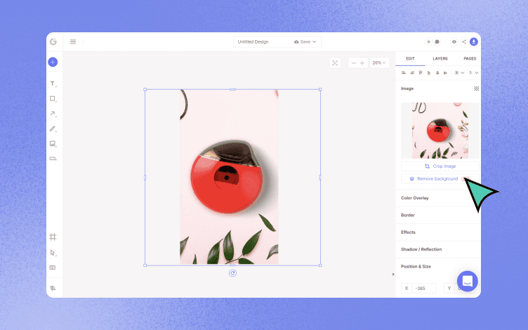 Step 4: Once your image has been uploaded, click the “Remove Background” button on the right side of your screen to customize your background.