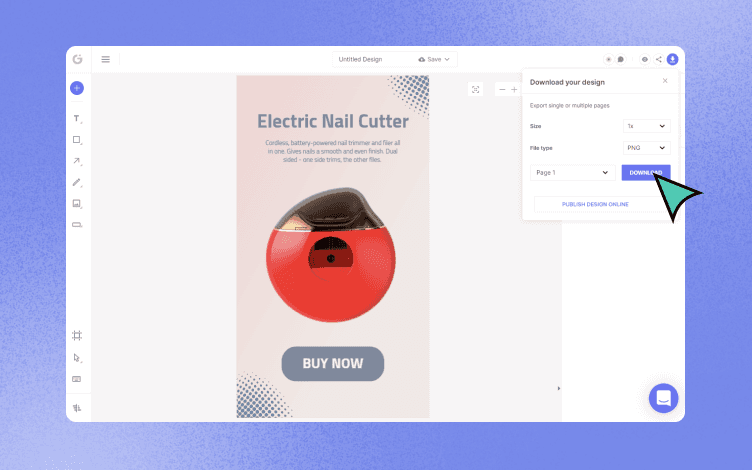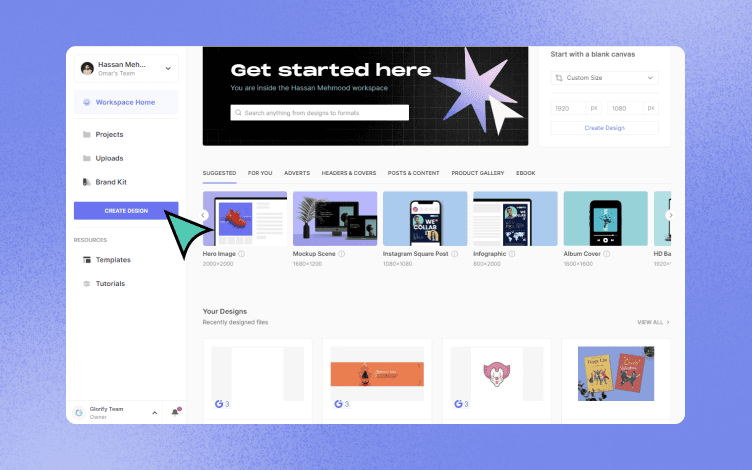 Step 1: On the left side of your dashboard, click “Create Design.”