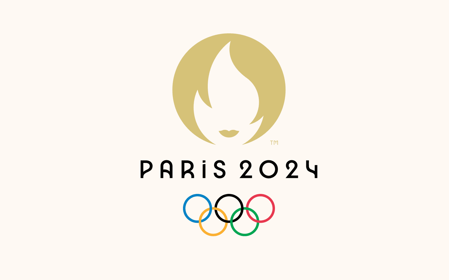 The design features a sleek, gold-colored Marianne, a personification of the French Republic, framed within a circle that resembles a gold medal. Marianne's face is made from the negative space between a flame and the outline of a woman's face, symbolizing both the Olympic flame and the spirit of freedom and equality that France champions. The minimalist design is complemented by the inclusion of the Olympic rings at the base, grounding the logo in the enduring tradition of the Games.