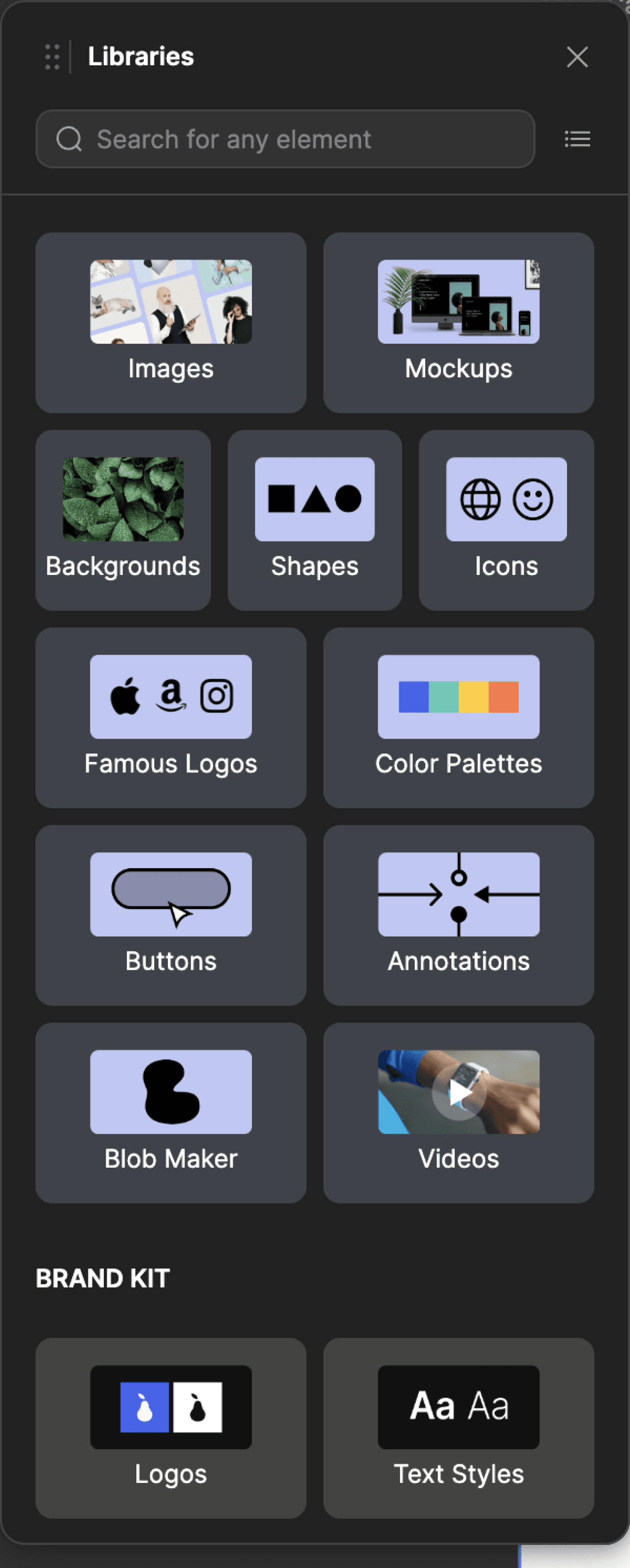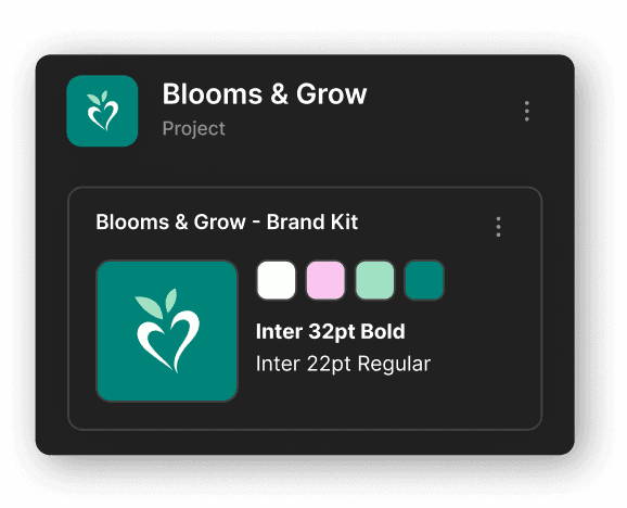 Centralize your brand assets in one place with an easily accessible brand kit for logos, fonts, text styles, and color palettes.