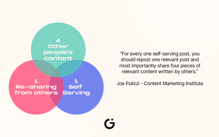 According to the 4-1-1 rule, you should publish content from another source and, most crucially, four posts created by others for every post you share about your brand.