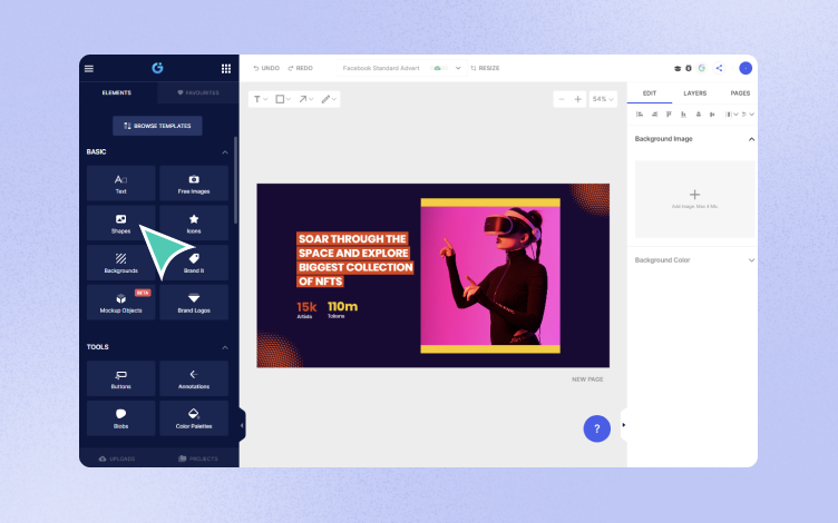 Step 3: Go to the “Elements” tab to personalise your banner. You can include shapes, icons, lines and graphics and illustrations.